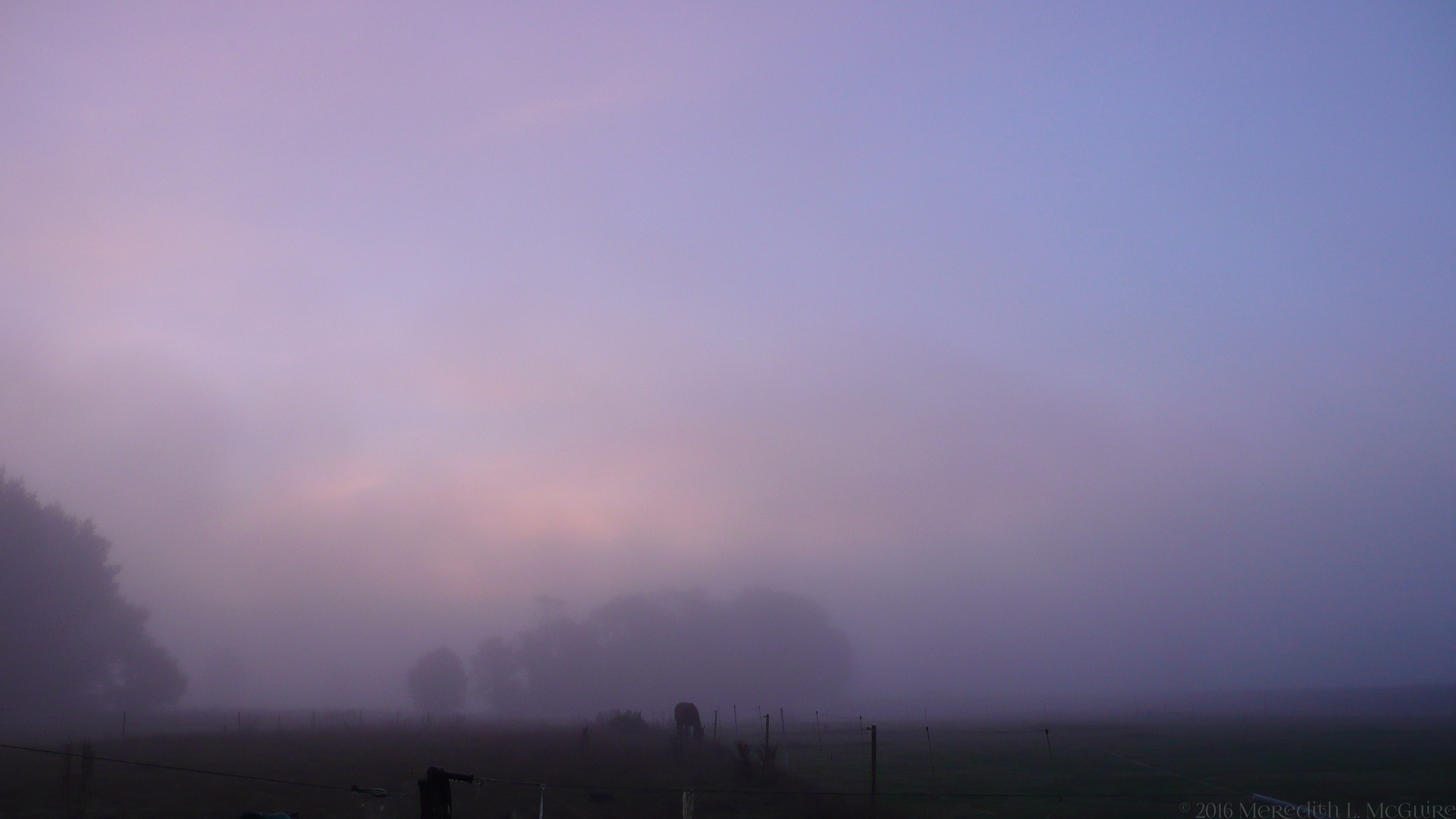 The sky is white-grey in a way I’ve never seen before, except in movies. It mingles with the silence of this farm in a blanket that feels warm, embracing, romantic, especially as the birds are not yet asleep; and their high-pitched calls to each other embellish this scene like golden-threaded embroidery.